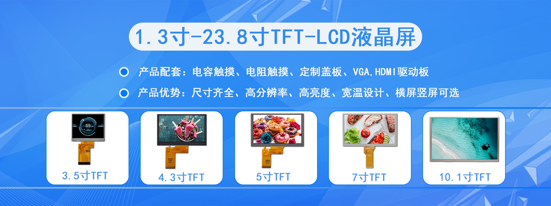 公司主營產品為0.96寸~27寸液晶屏及相關配套產品,主力尺寸為3.5”、4.3”、5”、7”、8”、9”、10.1”、11.6”、13.3”、15.6”。綜合月生產產量約500-800K。我們的產品超過60%為按客戶需求定制的產品,多年的行業(yè)經驗讓我們可以根據客戶的產品應用提供建設性的定制建議。